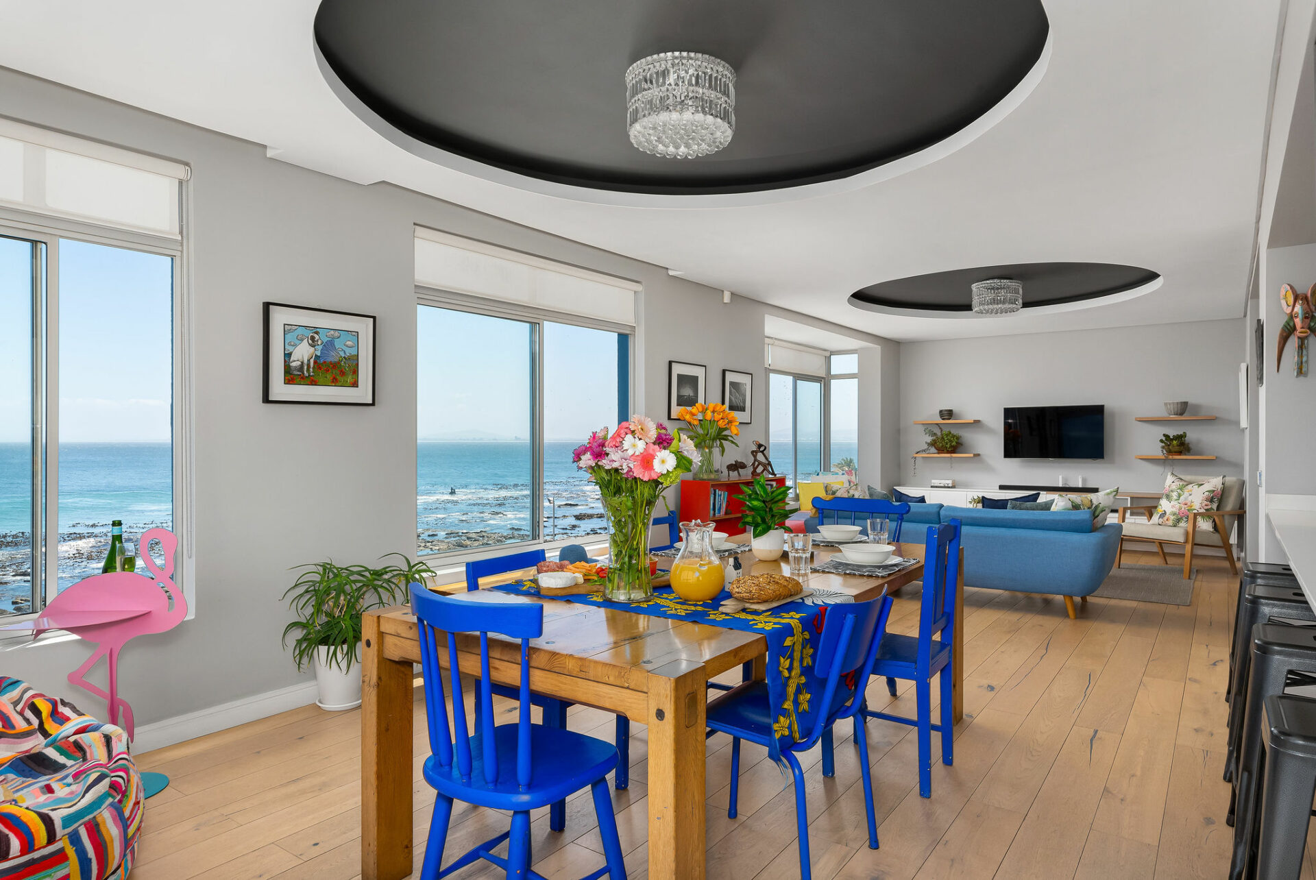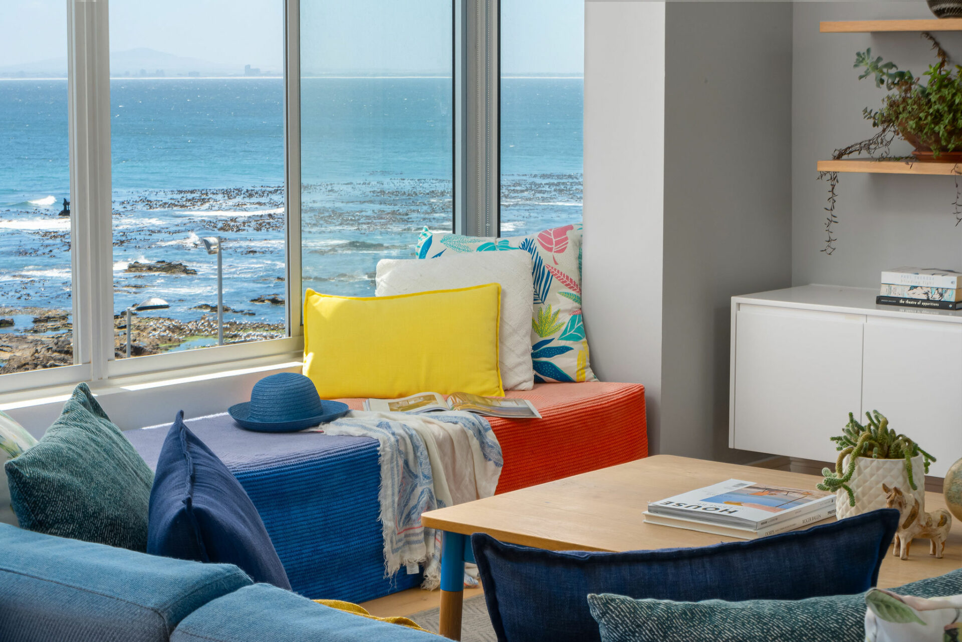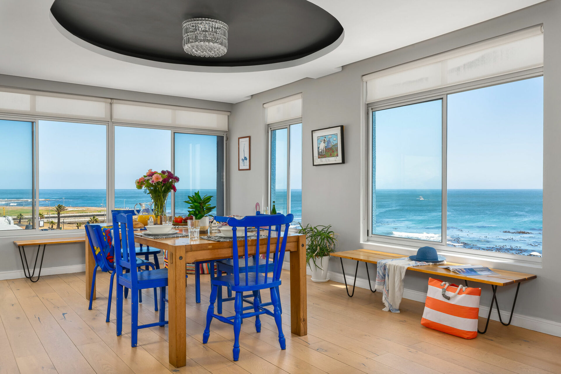Located within walking distance of the V&A Waterfront shopping precinct and a variety of popular beachfront restaurants, staying in is also an option as the apartment’s open-plan kitchen-dining-lounge area boasts large sliding windows that invite the outside in. Surrounded by sea and mountain views, think of a holiday rhythm that is set by the changing light of the rising or setting sun, by the ebb and flow of the ocean, and from watching the passing ships – and every so often dolphins, whales, and local surfers – in the ocean less than 20m away.