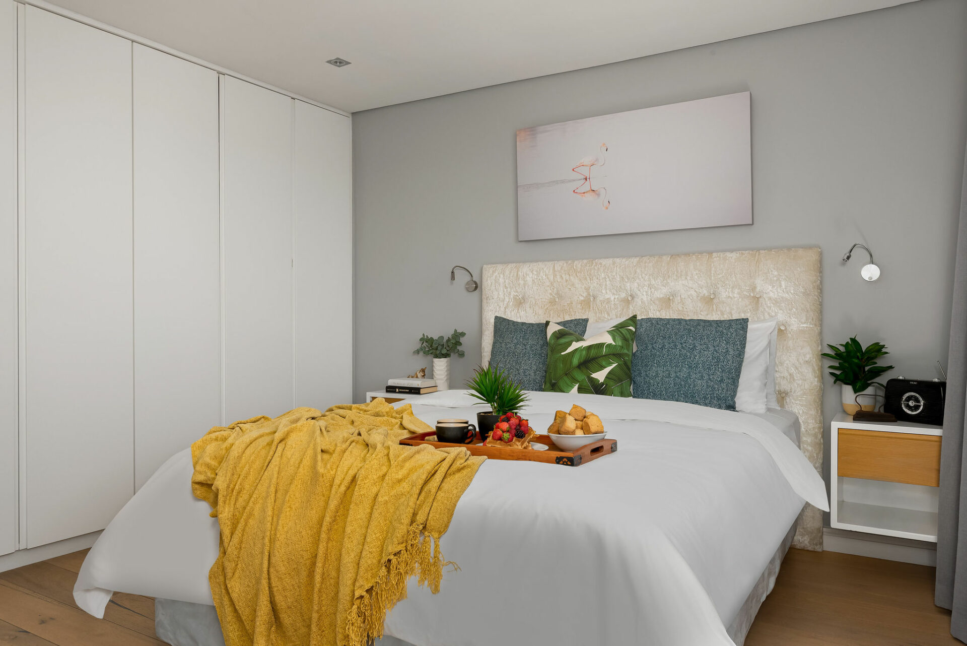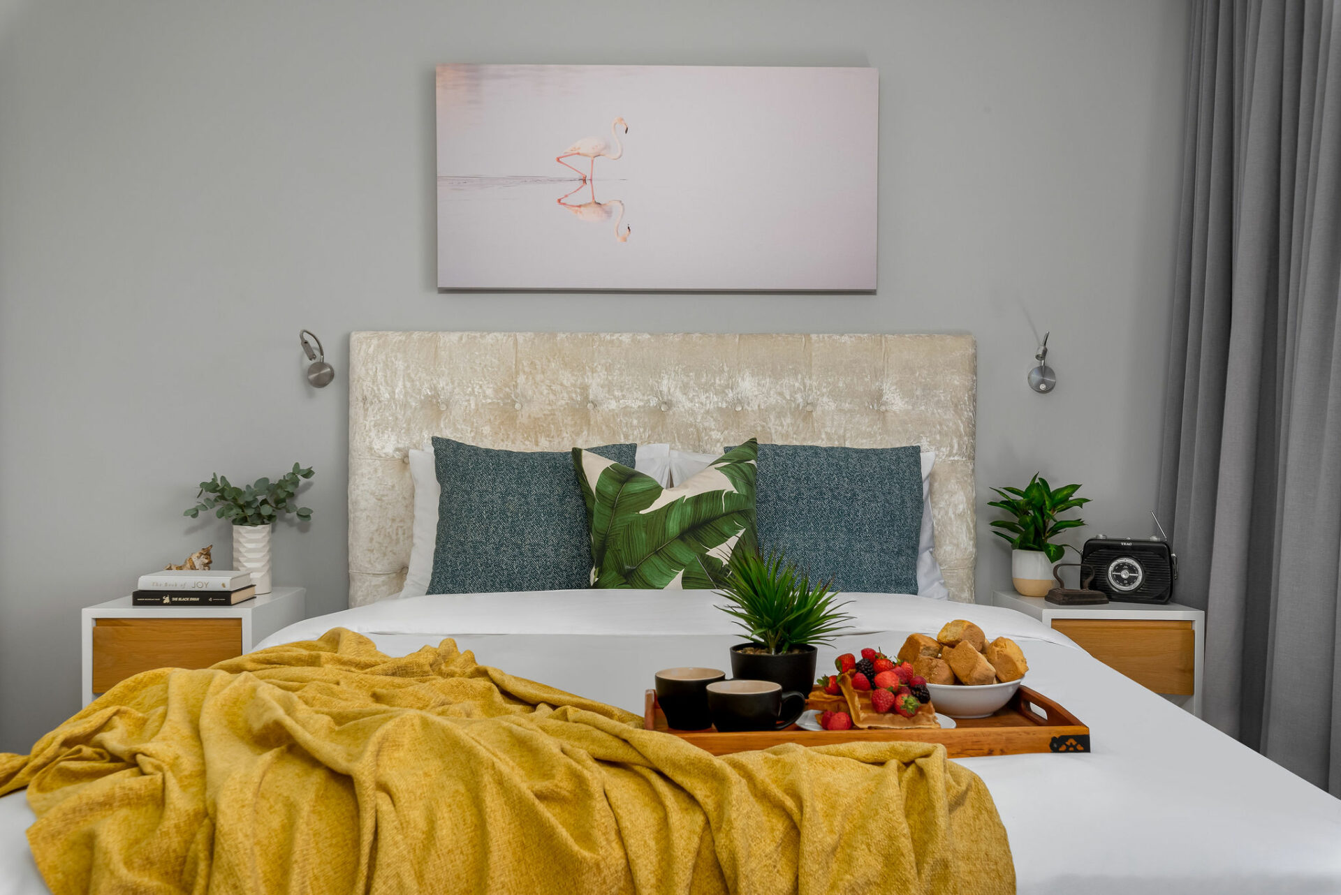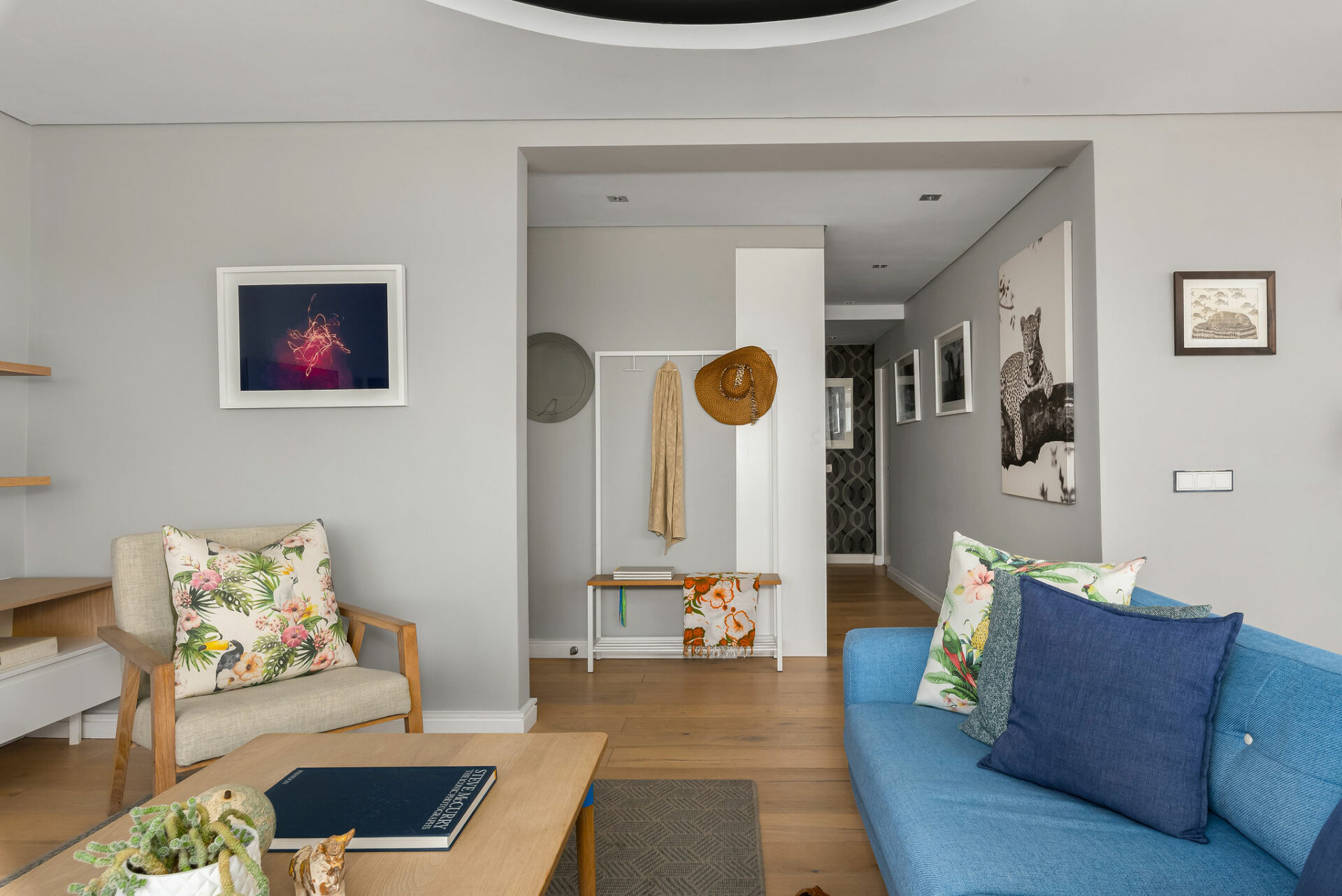 Stylish and modern, this 2 bedroom, 2 bathroom Mouille Point luxury apartment caters for your every comfort. From the hand-picked interior pieces that reveal a delightful quirkiness, to the beautiful artworks, books, games (and even an electric piano) for your home entertainment, it’s perfect for the discerning guest.
