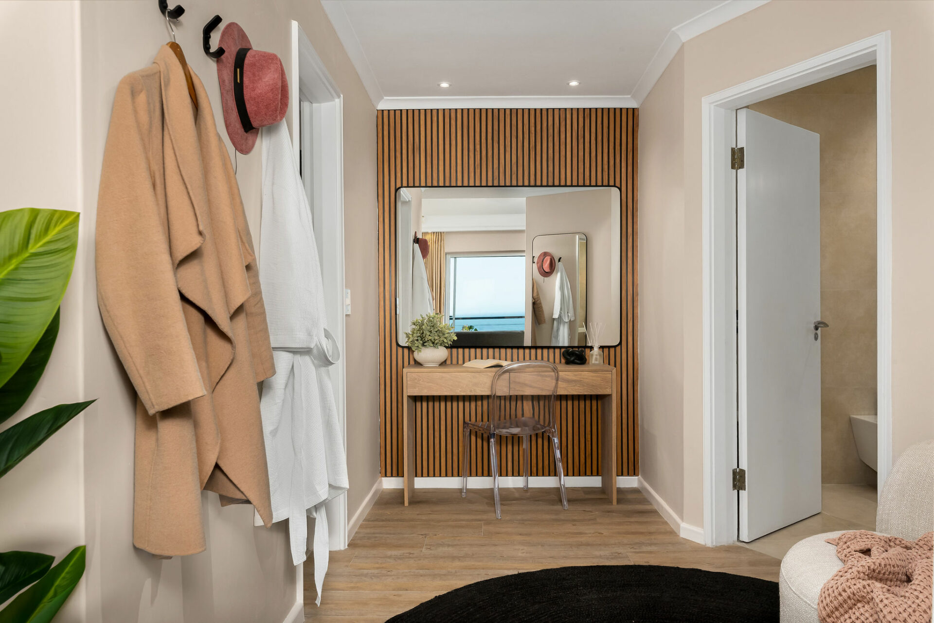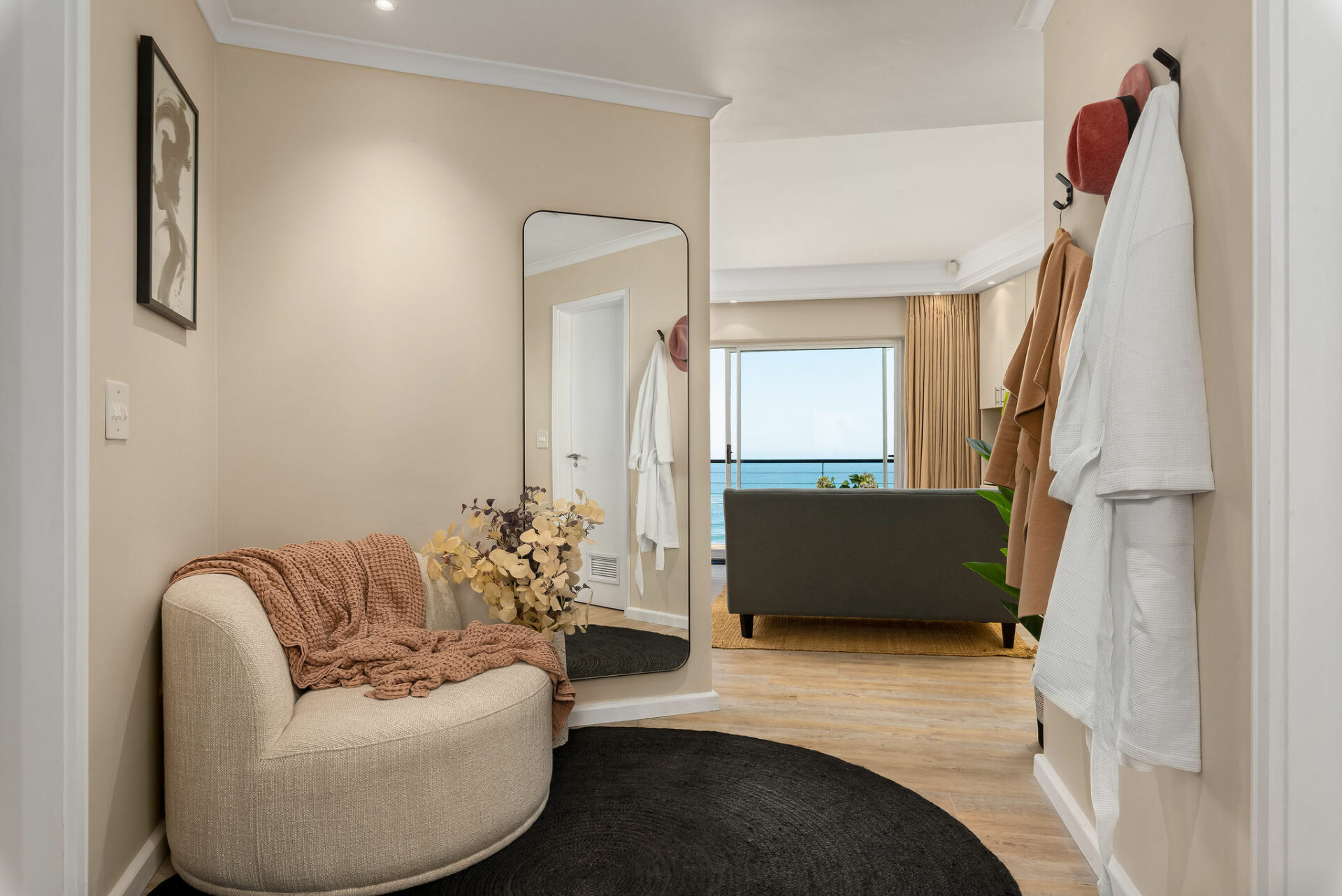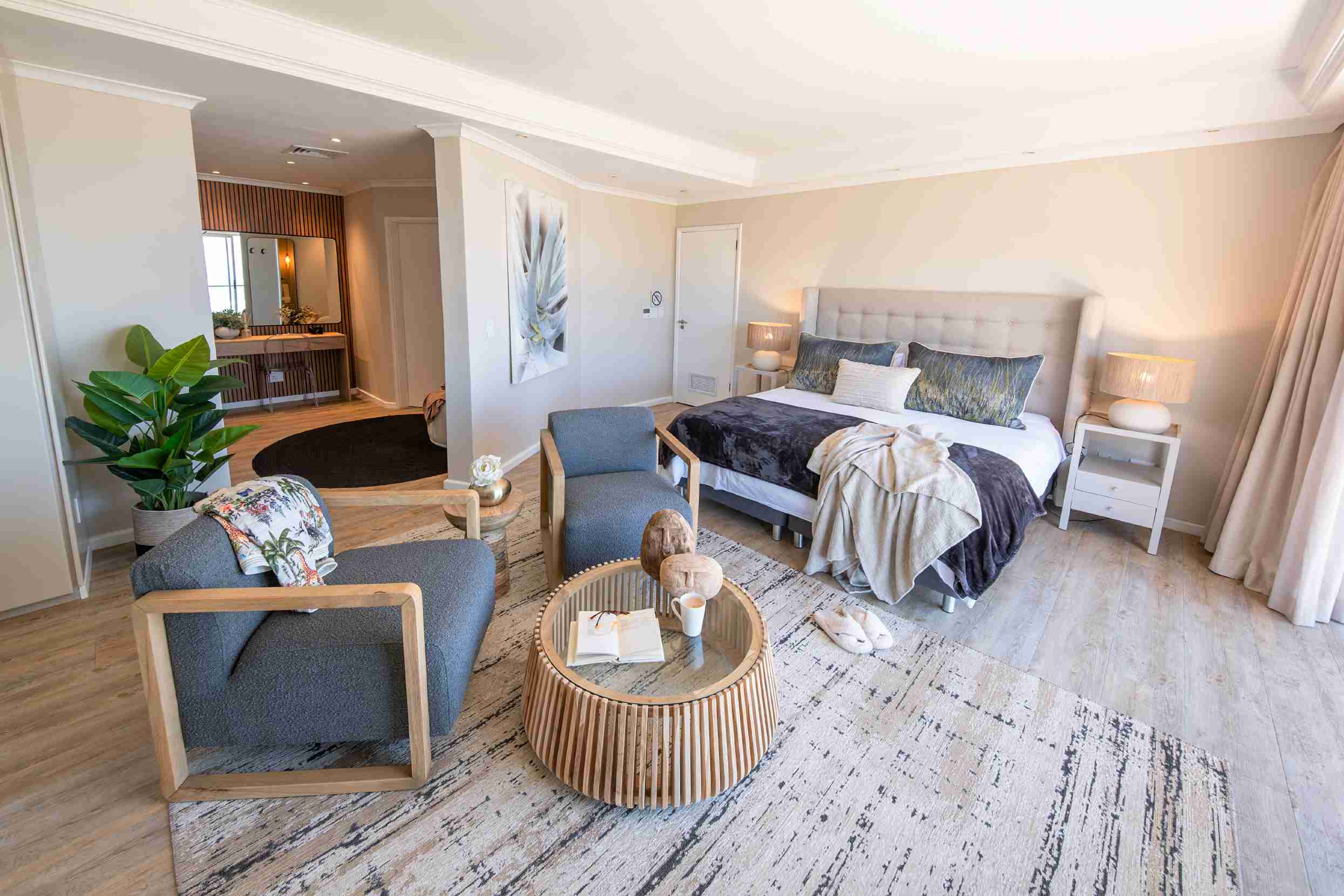 King size bed (can be separated into twins), sea views, airconditioner/heater, en-suite bathroom with walk in shower, double basis, digital safe.