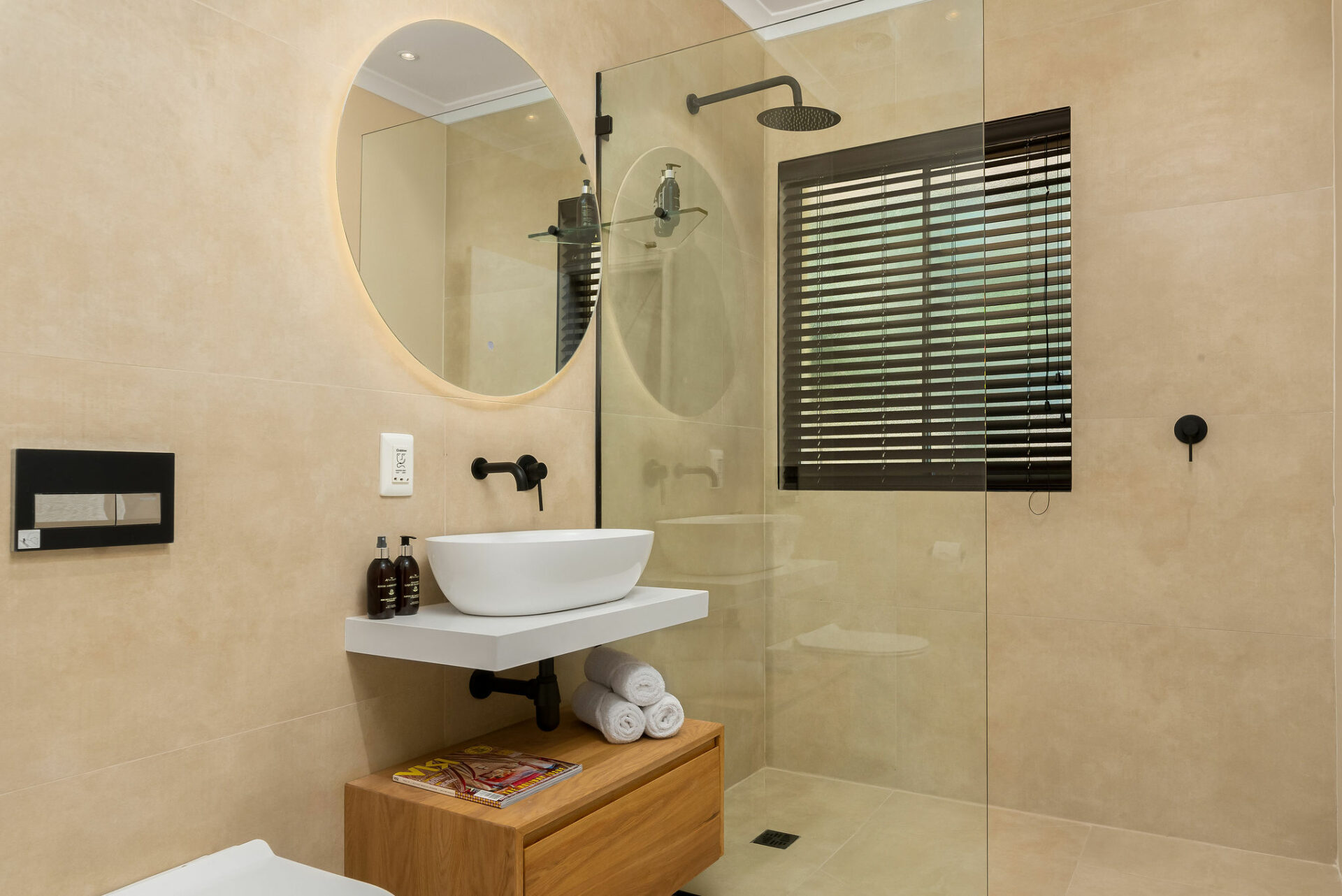 King size bed (can be separated into twins) with sea views, dedicated bathroom with walk in shower.