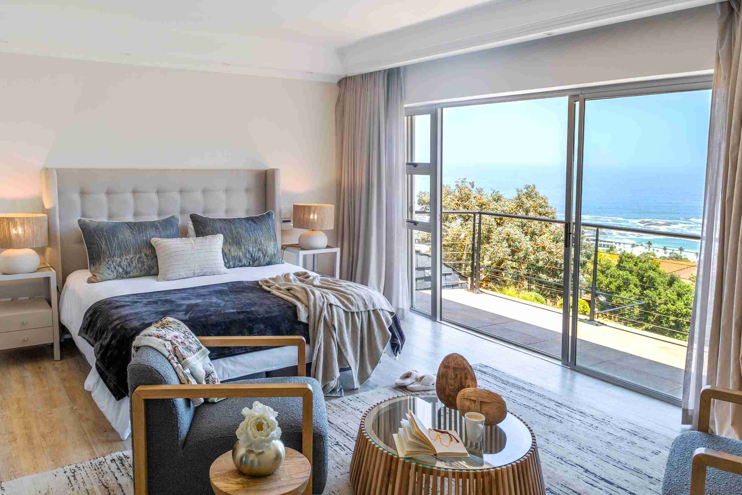 Queen size bed with sea and mountain views, en-suite bathroom with walk in shower, TV.